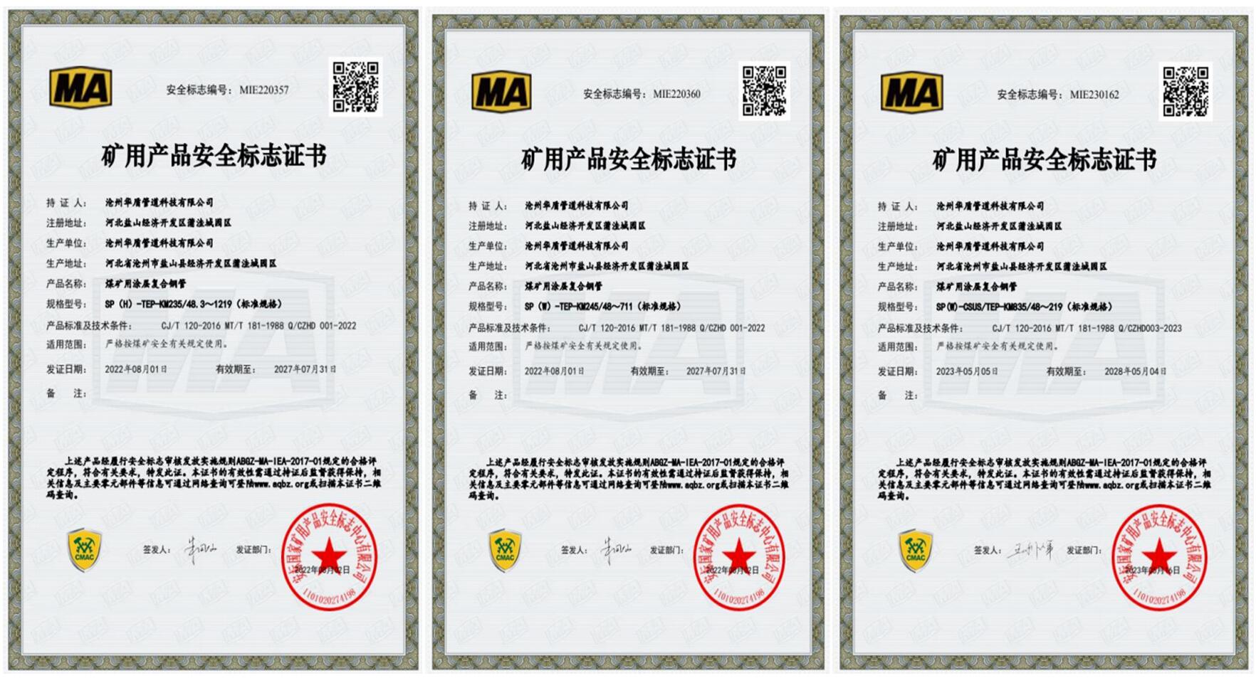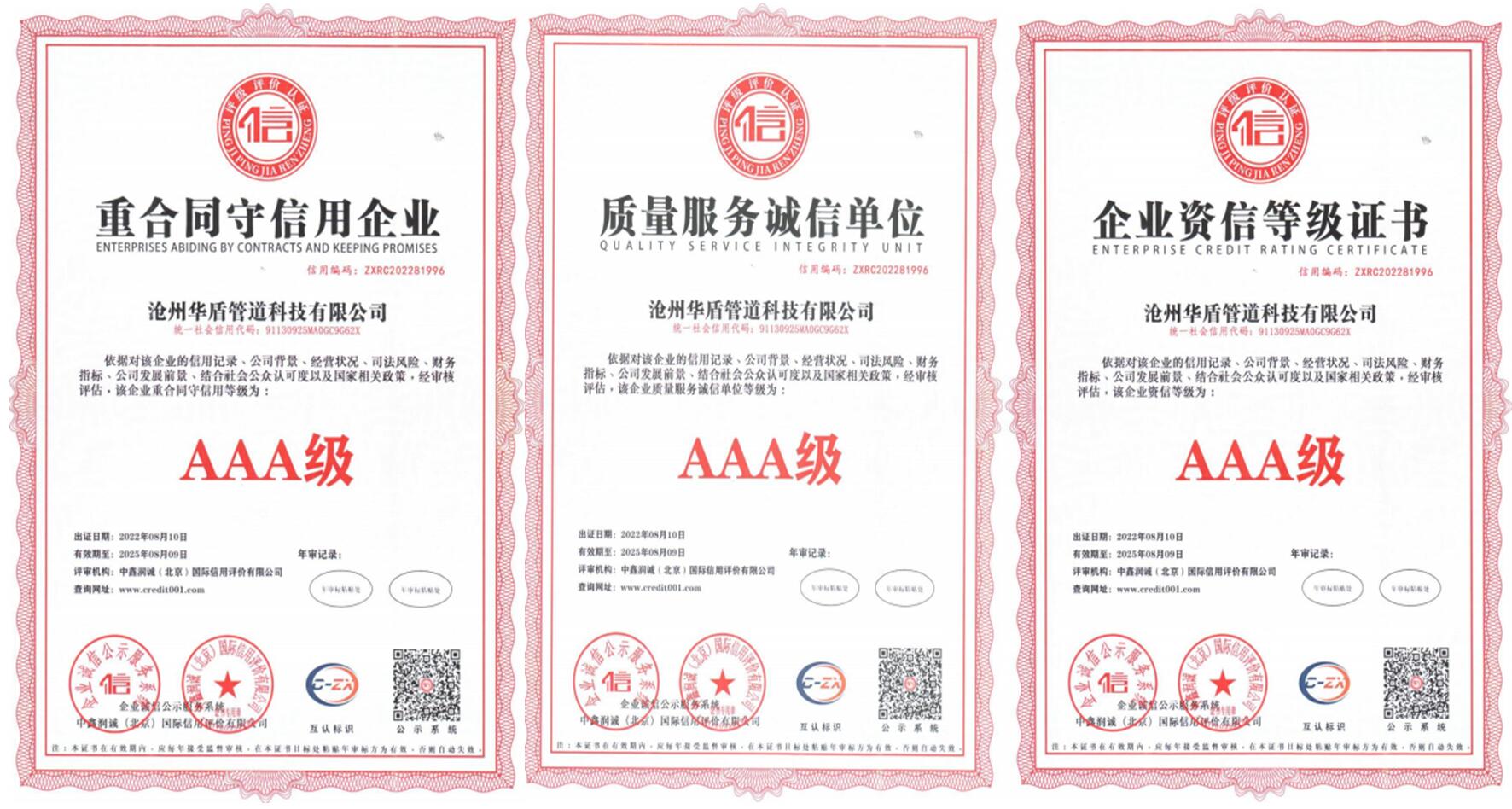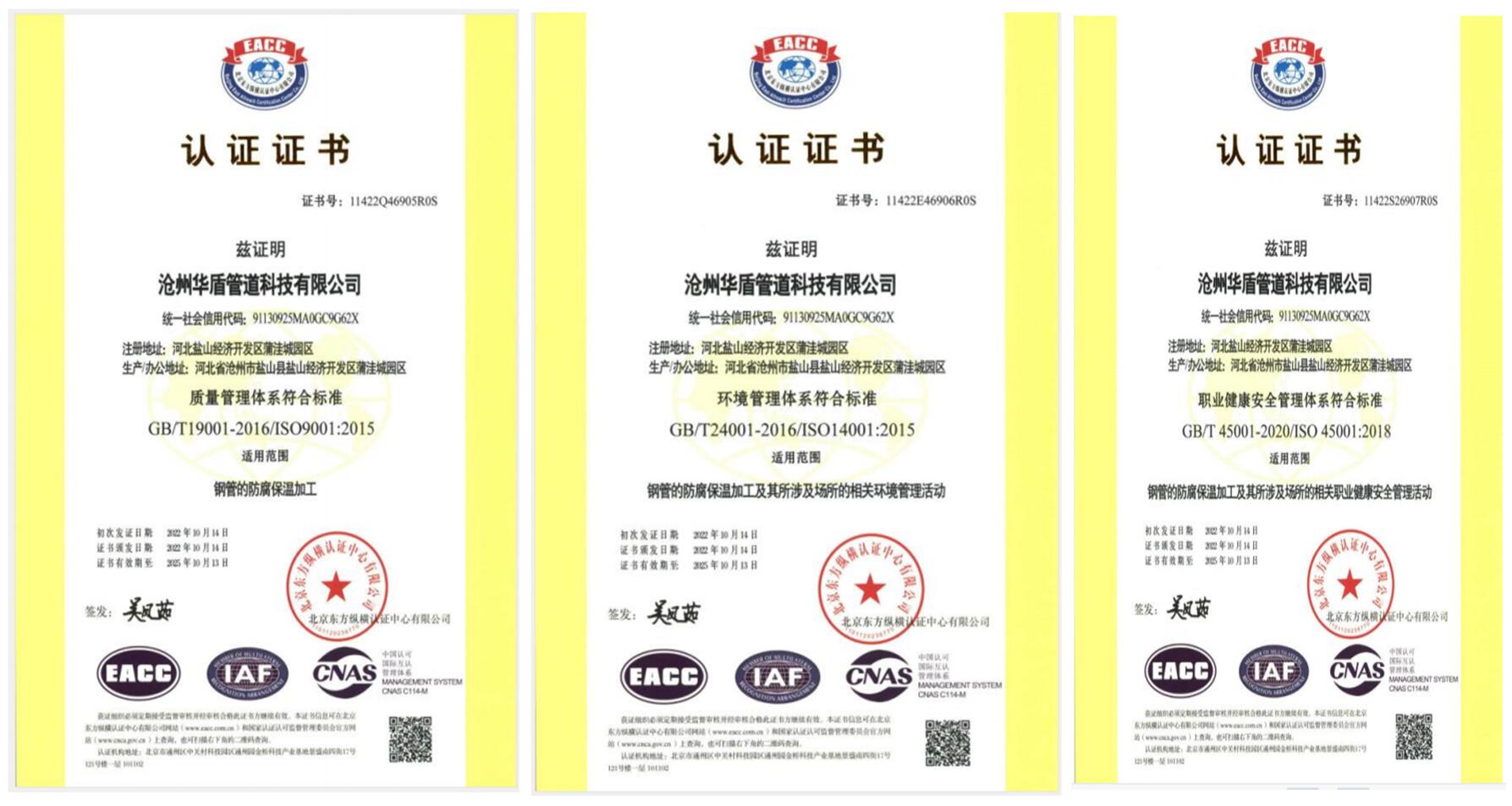 我公司所生产管道产品均通过ISO9001-2008质量体系认证,质量上乘。公司先后建立了独立的检测实验室,拥有先进的X射线实时成像系统、磁粉探伤仪、数字超声波探伤仪、"林肯"电焊机、静水压试验机等先进检测设备,为每一根钢管的质量保驾护航,让您放心使用。