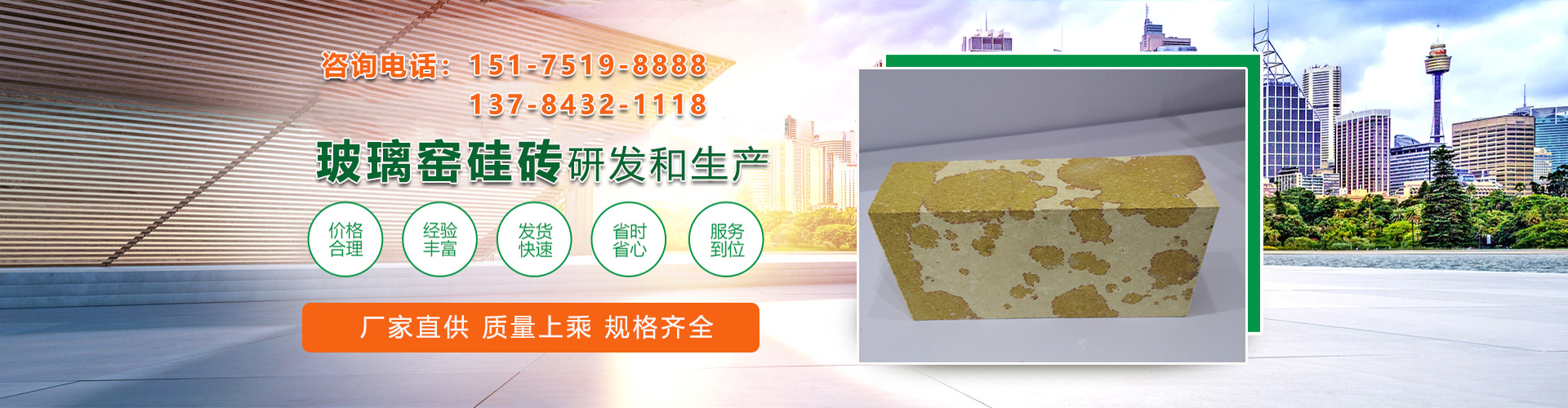 多年来,公司为国内央企及大型集团公司在国内外投资建设炉窑提供配套硅砖系列产品及服务。是“玻璃设计院”“玻璃工业设计研究院”“金晶集团”“迎新集团”等大客户建设炉窑的硅砖提供商。公司产品在国内外拥有良好的市场,产品行销全国各地。