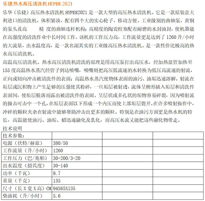 我公司致力于高压水清洗设备的销售及各种售后维修服务,同时为客户提供各种合理有效的清洗方案,公司将尽力为客户提供优良的服务。本公司的主要产品为各种参数的工业高压清洗机,同时还提供专门应对油污的高压热水清洗机。产品广泛应用于汽车制造业零部件加工业、食品加工业、化工厂、水泥厂、矿产加工业、建设工地、市政工程、环卫部门、酒店宾馆及物业超市等行业。