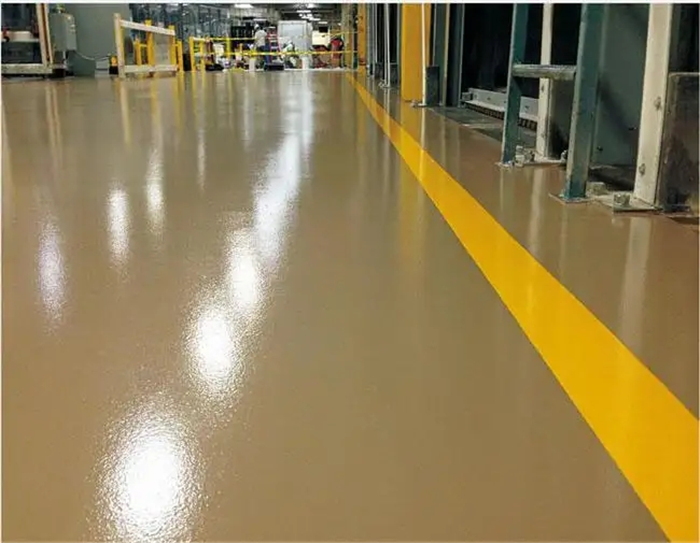 3 、耐重压、耐冲击性好,机械性能优;耐油污、具有较好的化学品抵抗性,也可具有较好的耐紫外线性能(表面可罩聚氨酯清漆);