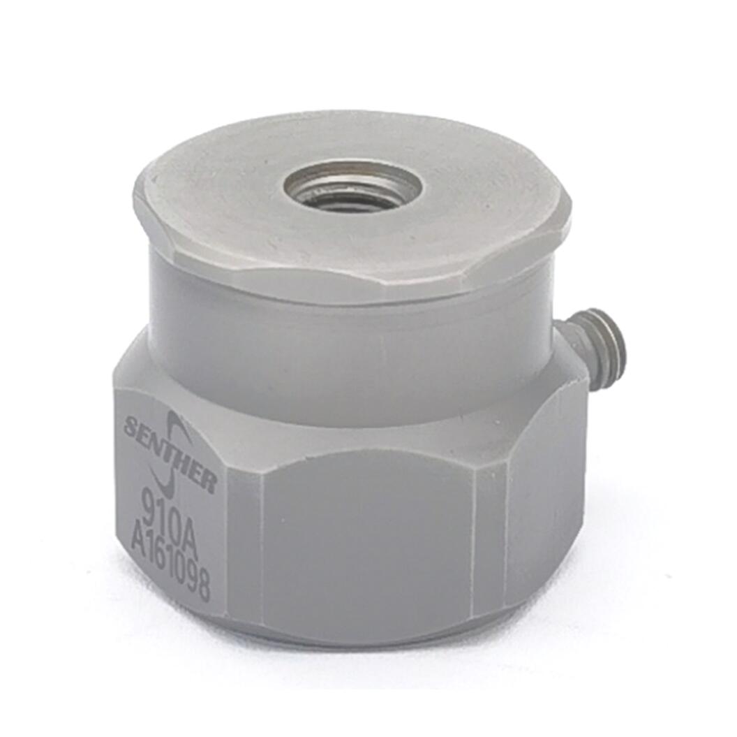 910A校准型加速度传感器是一款专为加速度传感器的标定和校准设 计的比较标准传感器。该产品采用压缩模式工作的石英晶 体为敏感元件,同时外壳采用316L不锈钢激光焊接密封设 计,具有平坦的高频响应特性和输出保持长期稳定的特性, 非常适合用于振动或冲击加速度传感器的标定/校准用标 准传感器。910A校准型加速度传感器提供1/4-28的螺孔,支持顶端或底面 安装(即振动器端或加速度传感器测试端安装)。 910A校准型加速度传感器结构采用扁平化设计,具有极佳的信号传导能力; 同时 得益于独创的石英晶体结构设计,使得产品具有低基座应 变灵敏度、高谐振频率点和非常优秀的输出长期稳定的特 性。 产品信号地与外壳相连,可提供绝缘垫片。产品信号 通过10-32的连接头输出,需与同轴线缆配合进行测量使 用,森瑟科技提供与之互配的线缆,型号:11-L, 具体参 见配件表格。