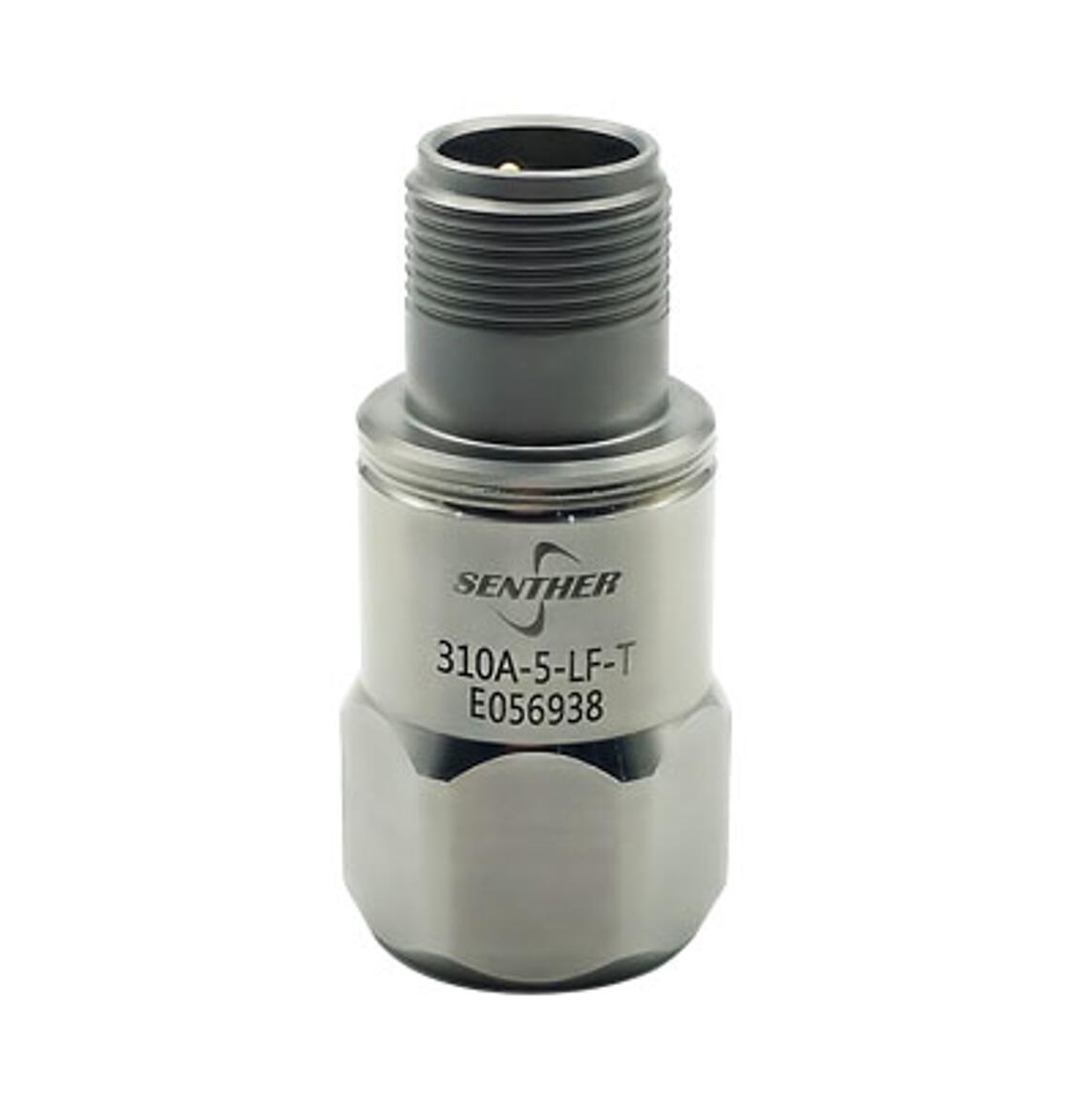 310A-5-LF通用型加速度传感器是一款工业振动测量用IEPE加速度传感器,其 特点是采用环形剪切模式的陶瓷晶体为敏感元件,具有长期 保持输出稳定的特性。此加速度传感器的内部电路是在IEPE 的两线制系统上同时提供恒流源激励和传输低阻抗电压输 出信号,信号地内部屏蔽,并与外壳隔离;同时信号放大电 路设计考虑了极性反向保护。外壳采用激光焊接工艺以保证 产品的密封性;输出连接头采用标准的MIL-C-5015玻璃绝缘 连接器以满足不同环境下使用时输出的稳定性;同时310A-5-LF通用型加速度传感器支持粘合剂安装,也支持1/4-28的螺纹孔牢 固安装。310A-5-LF通用型加速度传感器具有频带响应宽和抗冲击的 特性,所以对于环境比较恶劣的工业振动监控和测量使用来 说,310A-5-LF通用型加速度传感器绝对是一款理想的加速度传感器。另外,森瑟科技 还提供与标准MIL-C-5015接头配套的线缆:型号16A-L可选, 具体参见配件表格。