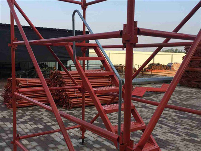 二、承载力强。香蕉式安全爬梯冲压销库具有可靠的轴向抗剪力,横杆与立杆接触面大,整体稳定强度比碗扣式脚手架提高60%以上。