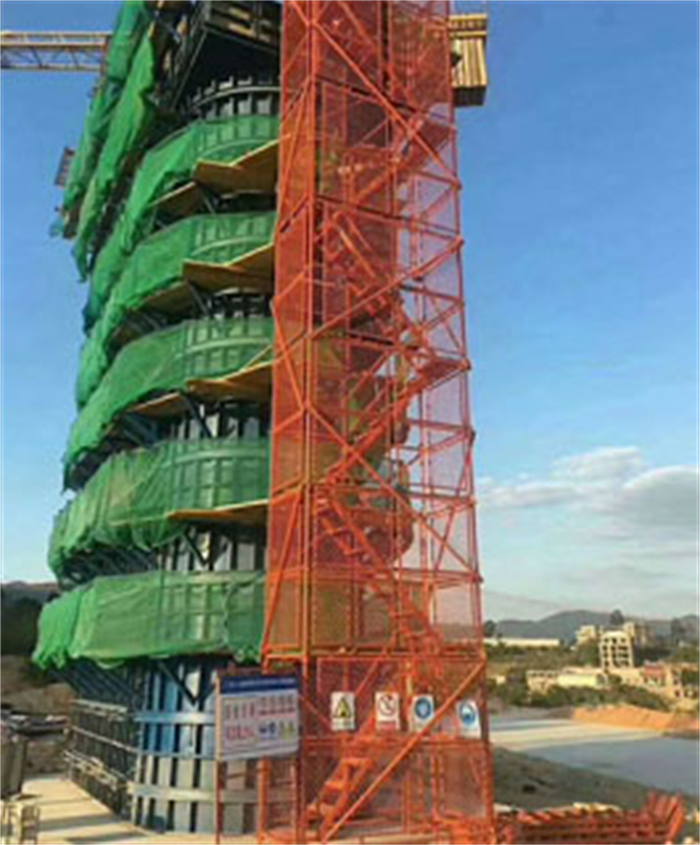 五、综合效益好。香蕉式安全爬梯构件系列标准化,便于运输和管理,无零散易丢失构件,损耗低,后期投入少。