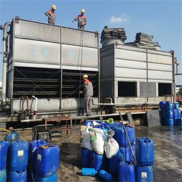 采用公司研发的蒸发式冷凝器清洗剂,配合高效锌金属缓蚀剂,清洗蒸发式