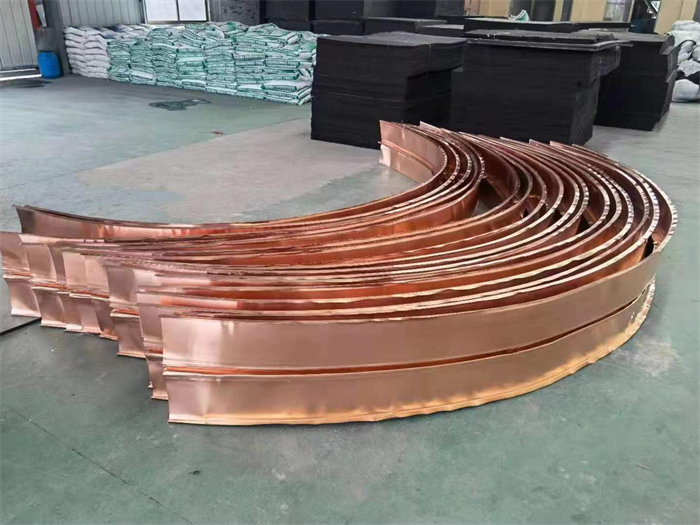 止水铜片的形状与建筑物息息相关,常见的有弧形止水铜片、十字形止水铜片、椭圆形止水铜片等,还有一些通常断面是什么形状我们就称其为什么形,如T形止水铜片、W形止水铜片等。每个施工项目各有千秋,如在坝堆止水中,处于底部止水时通常用到W形止水铜片,使他区别于其他形状而独树一帜的特点便是中间能放置橡胶止水条,中间隆起的"鼻子"处能随施工缝热胀冷缩,和橡胶止水带结合使用可谓给防渗系统如虎添翼。再说说在箱涵止水、隧道止水中,弧形止水铜片必不可少。十字形止水铜片指的是止水铜片接头,对施工要求严格,施工项目需要更高的防渗级别,铜止水接头也不可或缺。