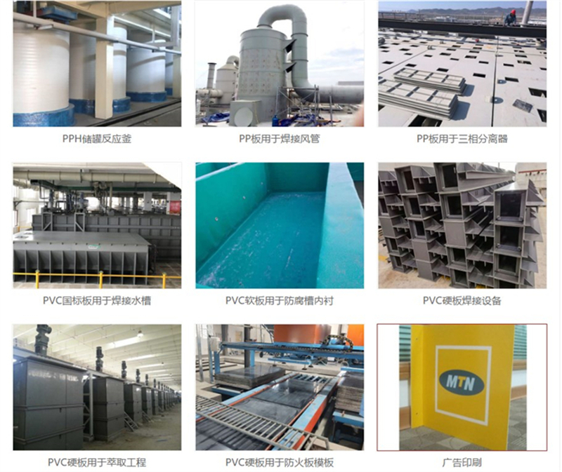 我公司拥有板材生产线,年生产能力强,公司主要产品为工程塑料,有PVC硬板、软板、透明板, PP板材、PPH板材、PE板、CPVC板、PPH缠绕罐、HDPE缠绕罐以及各种塑料焊条,并承接各种塑料焊接工程,公司配备大型雕刻机,为客户提供一条龙加工服务。其中PVC挤出厚板厚度可达60mm,工程板宽度可达2米。产品广泛应用于环保设备、化工、石油、电镀、矿山、电子、建筑、稀有金属和稀土萃取、食品、 航天以及广告印刷等多种行业。产品销售已覆盖全国各地。