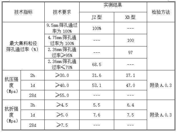 2h抗压强度≥30 Mpa、抗折强度≥4.5 Mpa;