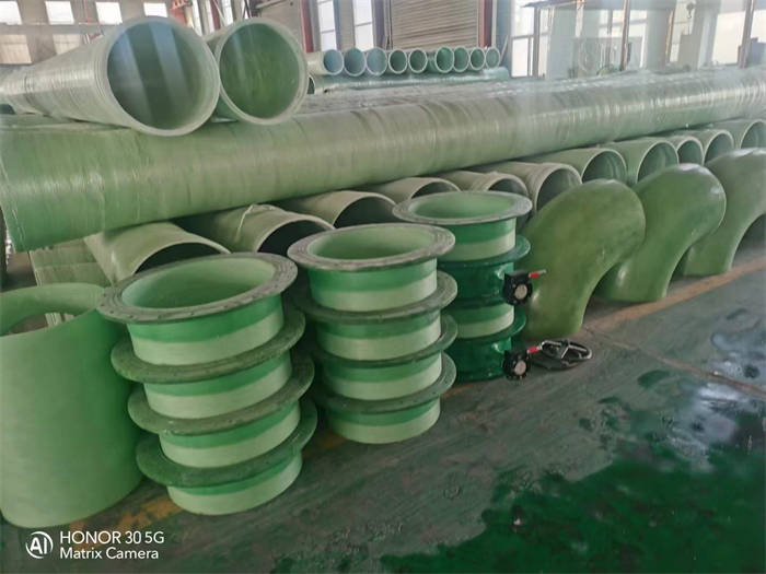 玻璃钢管道采用树脂(输送饮用水采用食品级树脂)、玻璃纤维、石英砂为原料,用特殊工艺制作而成。